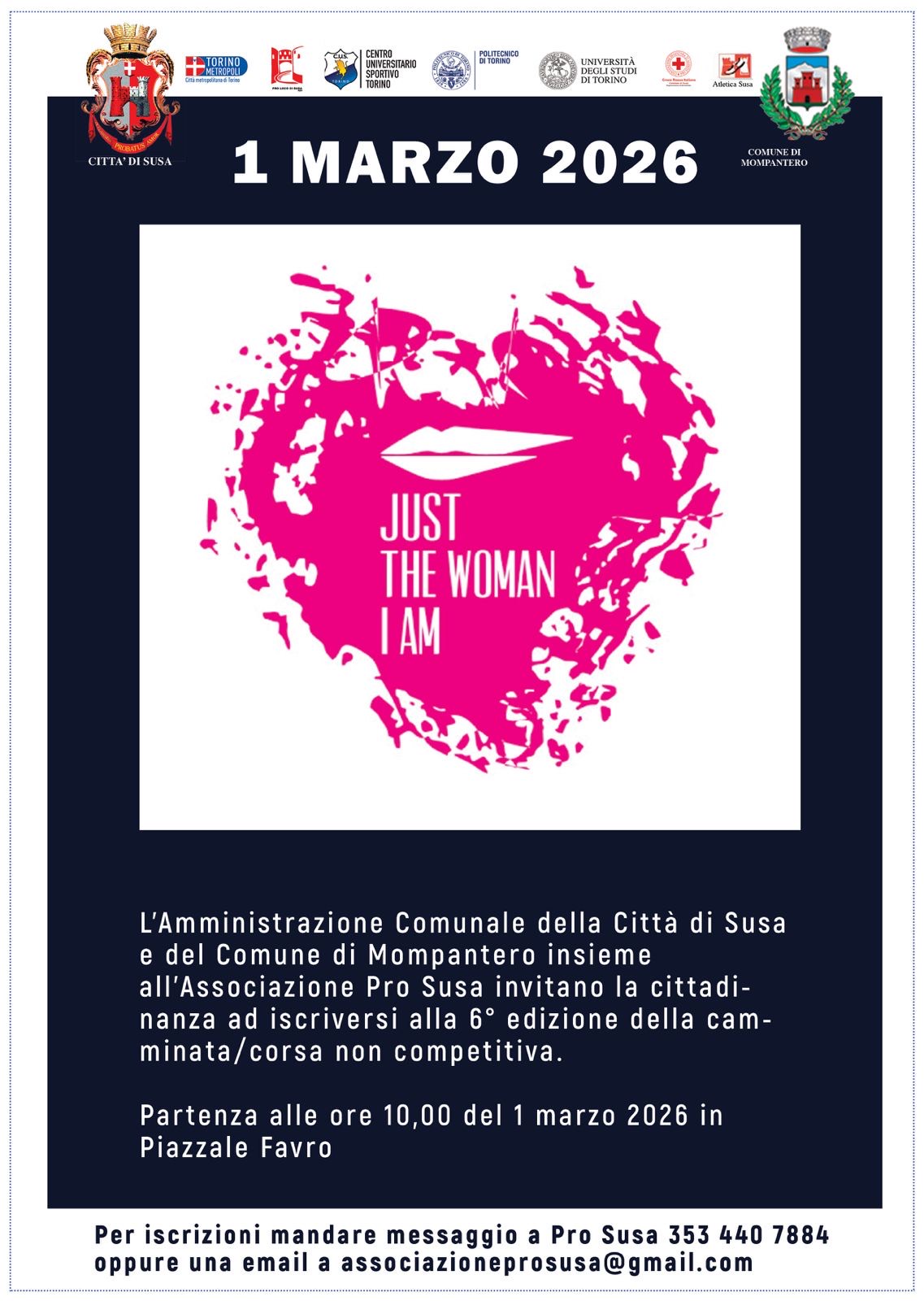 Per iscrizioni mandare messaggio a Pro Susa al n. 3534407884 oppure mandare email a associazioneprosusa@gmail.com