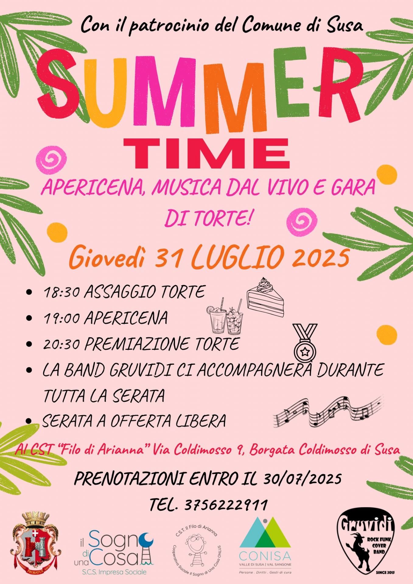 Prenotazioni e iscrizione alla gara di torte entro il 30/07/2025 ai numeri 3756222911 - 0122629773