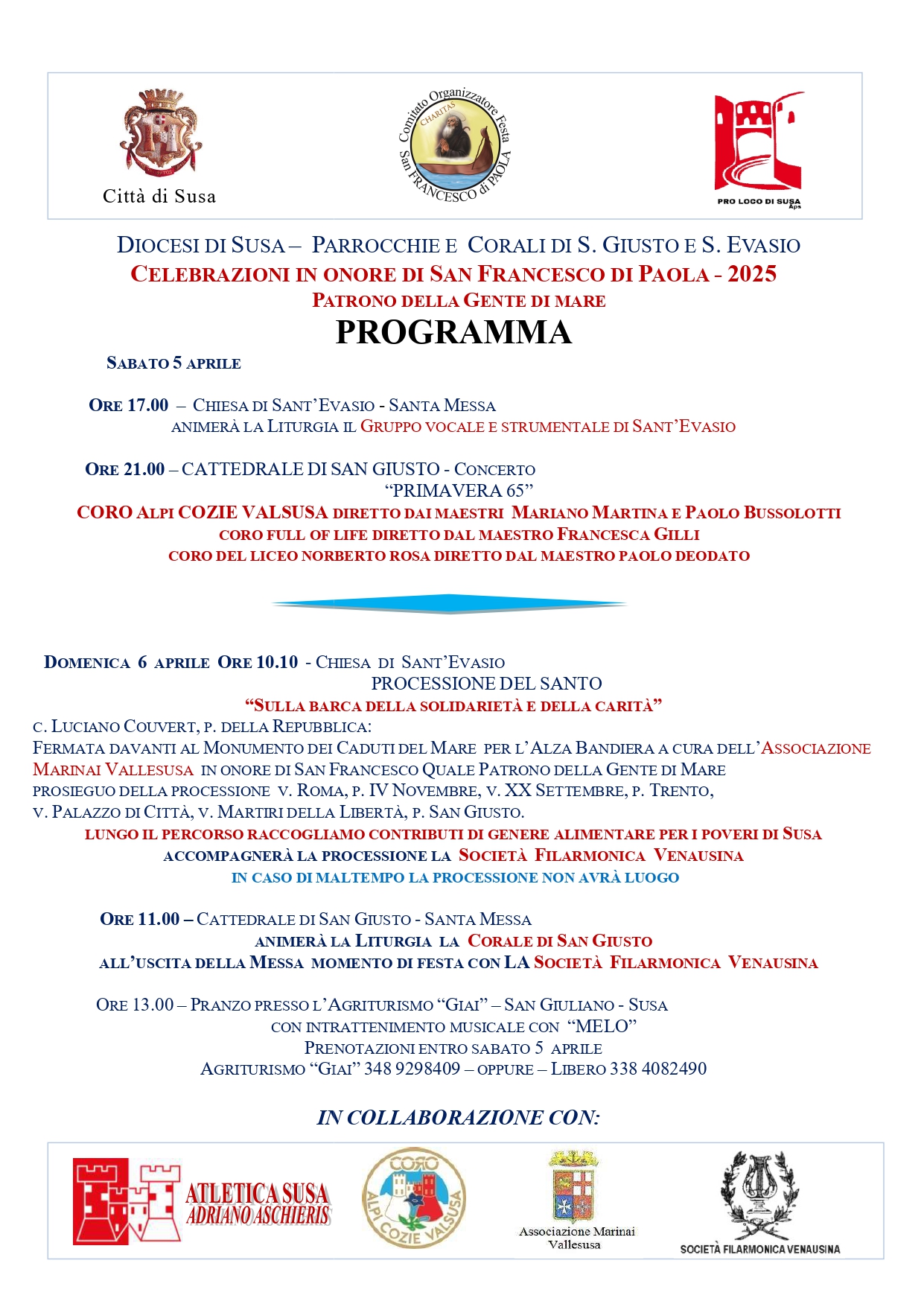 prenotazioni entro sabato 5 Aprile agriturismo "Giai" 348/9298409