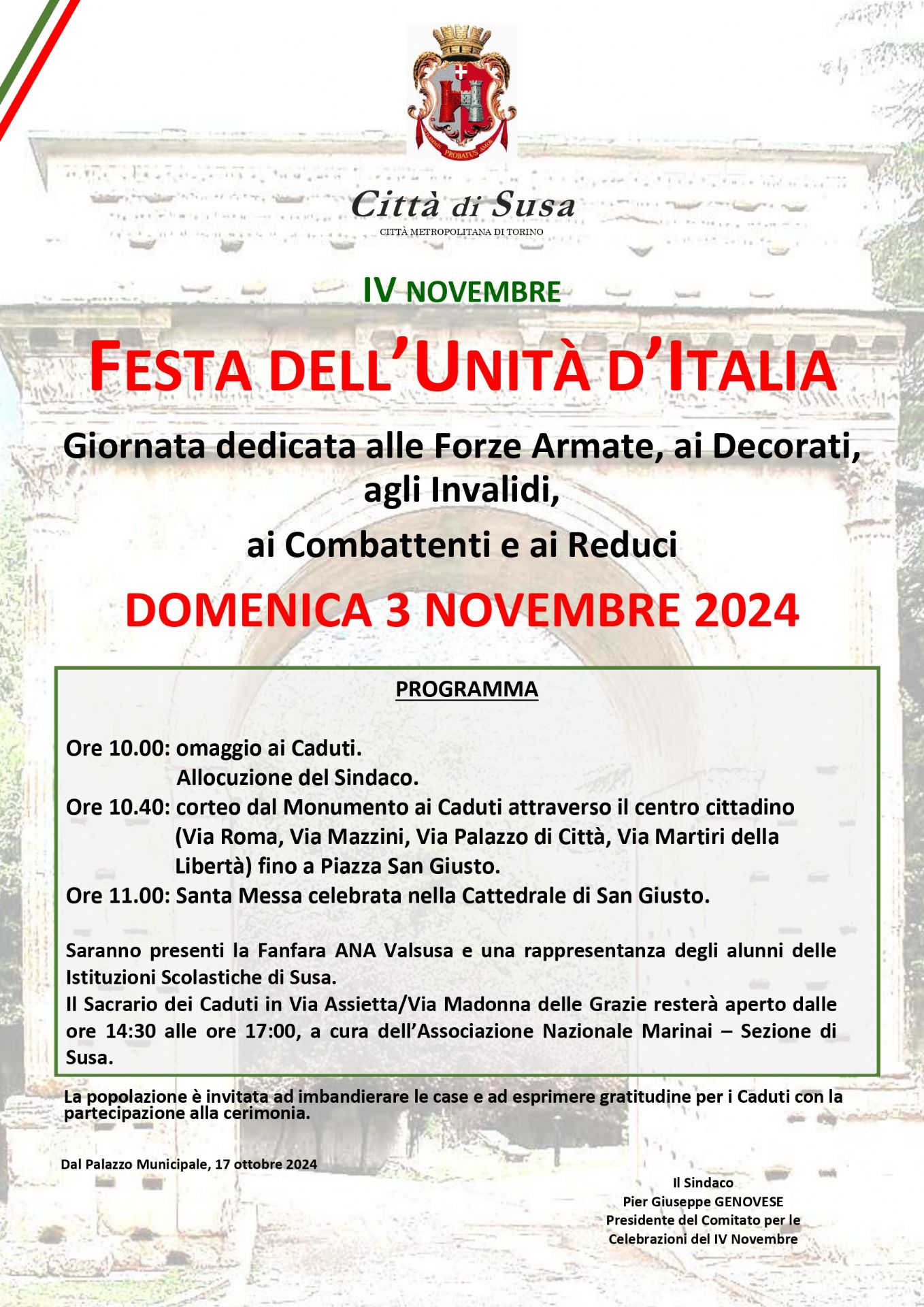 ore 10.00 : omaggio ai Caduti e allocuzione del Sindaco