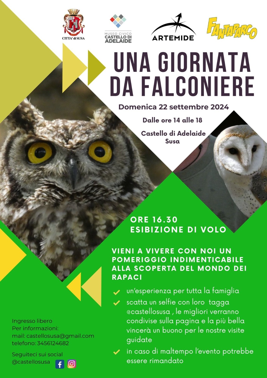 L’evento, nel suggestivo cortile del Castello della Contessa Adelaide, permetterà ai partecipanti di avvicinarsi al mondo dei rapaci, imparando a conoscerli da vicino e provando l'emozione di richiamarli in volo.