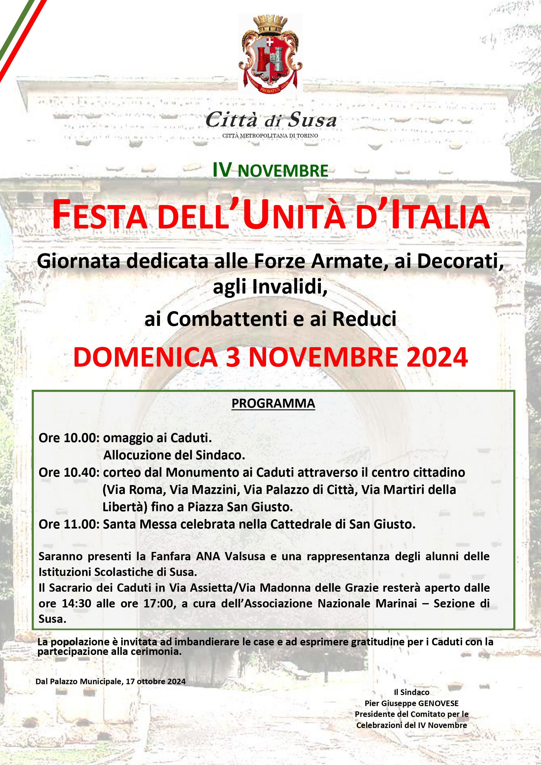 ore 10.00 : omaggio ai Caduti e allocuzione del Sindaco